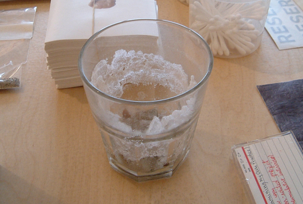 At the end of the day, I carefully carried the glass—without a lid—all the way back to my apartment in London, using the train and the London Underground. I held the glass constantly, using my arm as a kind of suspension shock-absorbing device to limit the amount of spillage. I managed to bring almost a full glass back, with only about twenty millimeters of seawater lost. I placed the glass at the side of my bed and watched as it slowly evaporated over the next few weeks, leaving behind beautiful salt crystals.