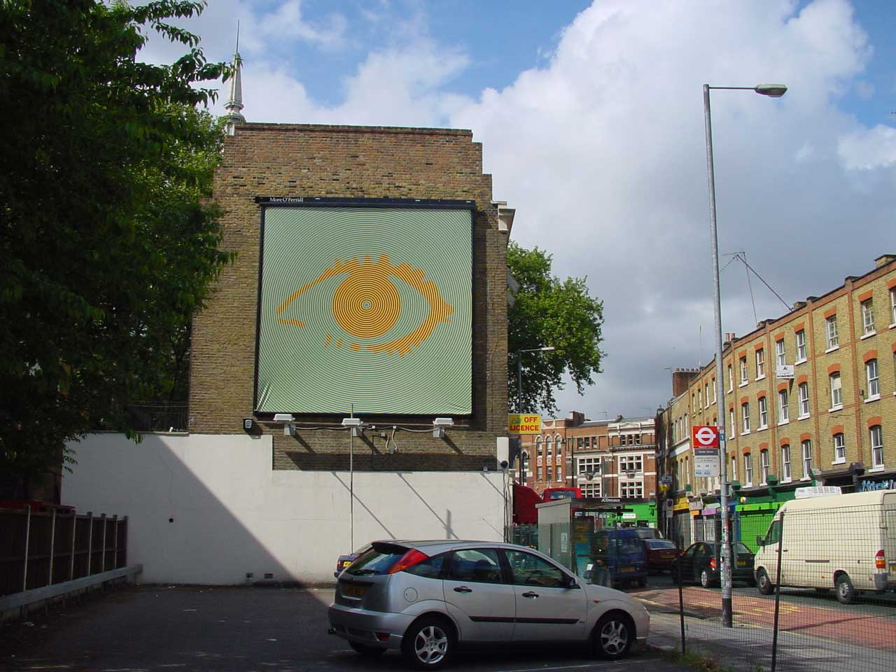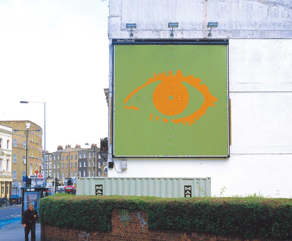 The logo is printed in cyan, magenta and yellow. Non of the colours are mixed during the printing. Using the Divisionism technique, the pure CMYK colours optically mix when the logo is viewed from a distance. The cyan and yellow mix to form green. The magenta and yellow mix to form red.