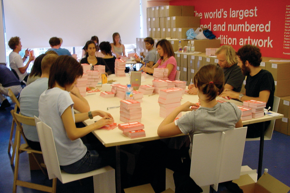 People involved in the project: Signatories Daniel Eatock Sam Solhaug Hanna Werning Lyn Winter Flávia Müller Medeiros Mark Hopkins Soo Hong Milos Covic Naoko Sato Kirsty Carter Helpers Sara De Bondt Billy Boyle Raymund Brinkmann Sara Carneholm Ulrika Flodberg Charlotte Hopkinson Mette Iversen Sarah Labigne Dawn Parsonage Kate Pelen Luna Raphael Ryan Ras Fran Villani