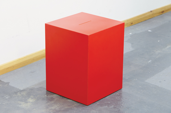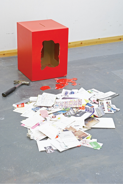Once something has been posted into the slot, there is no easy means to retrieve it: the stool is sealed on all sides. Over time, the ephemera inside becomes more important than the stool. At this point the Timecapstool can be smashed open like a piggy bank.