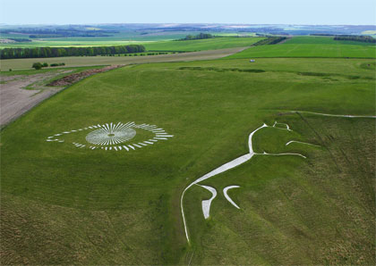 The Big Brother chalk eye was painted with permission by the National Trust above the mysterious White Horse, which was carved into the chalk hillside above the village of Uffington