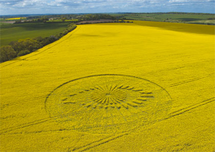 The Big Brother crop circle was made in a rapeseed field at Lockibgkiln Farm, Wantage, Oxfordshire, England. The one-hundred-meter-wide crop circle took six people a total of seven hours to construct.