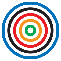 A composite of the Olympic Rings created in 1913 by Pierre de Coubertin (Five interlocking rings; blue, yellow, black, green, and red representing the five continents) and the RAF Roundel, associated with British pop art of the 1960s, appearing in paintings by Jasper Johns and Peter Blake. Subsequently it came to symbolise Mods and has evolved into the icon of cool Britannia.