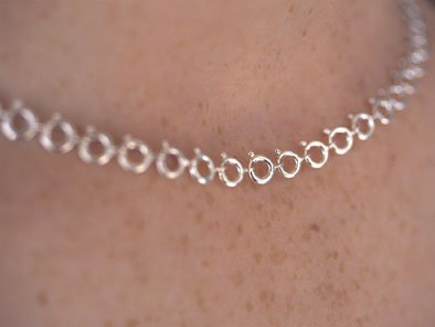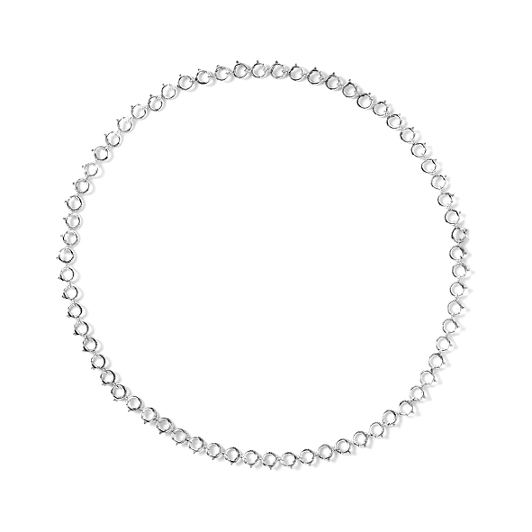 Constructed through linking archetypal silver clasps, transforming the non-decorative into an elegant necklace. Neckclasp subverts the typical notions of beauty by allowing the functional element of a necklace normally concealed at the back of the wearer's neck, to be highlighted and used as the single component that forms the piece.