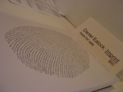 In 2008 Princeton Architectural Press published Eatock’s monograph Imprint. This 224-page book, the first to survey Eatock’s practice to date, features nearly 1000 images from over one hundred projects from 1994 to the present. Entirely authored and designed by Eatock, the book is distinguished not only by its (deceptive) lack of apparent order but also by the fact that each individual copy in the run of 4,000 is unique. In addition to inking his own thumbprint onto the spine of every book, Eatock arranged for one of his freehand circle drawings (inscribed on a sheet of yellow A4 paper) to be inserted into the binding of each copy at random locations throughout the entire edition.