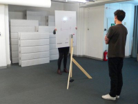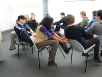 Daniel and Jonas iniciated a nice game before the three of us and the nine workshop participants could go for lunch. We had to count to twelve, each of us saying one number out loud, if two or more people duplicate a number at the same time, we started again. It took about a dozen attempts before we as a group counted perfectly in sequence without duplication.