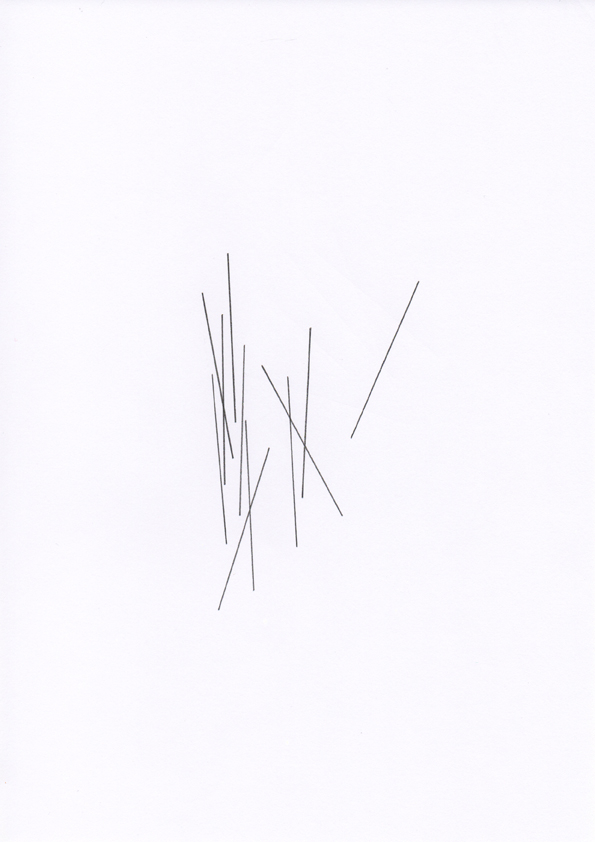 Technical Drawing (0.5mm 2B) mechanical pencil leads dropped on an A4 page and drawn in the position they landed using one of the leads