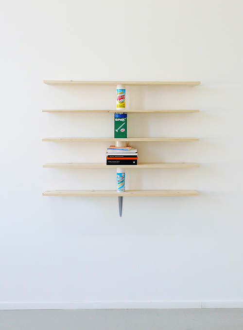 wooden shelves, metal bracket, and miscellaneous items collected from the immediate vicinity of the gallery