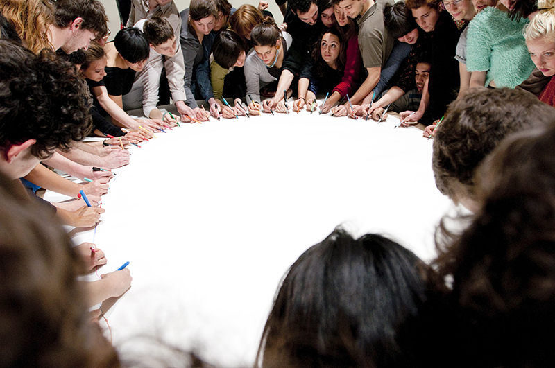 A circle drawn in one minute, in 60 sections simultaneously by 60 participants from Haute école des arts du Rhin (HEAR) Strasbourg France.