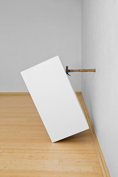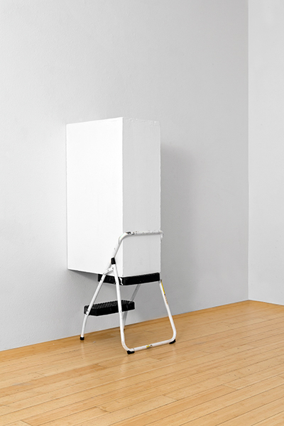 All the pre existing pedestals from the Summer BFA Exhibition propped and balanced by items selected from the gallery closets.
