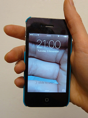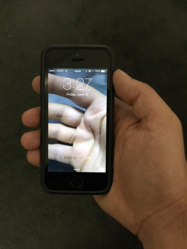 Using you phones camera, take a photo of the palm of your hand that typically holds your phone, select and use this photo as the Wallpaper/background screen.