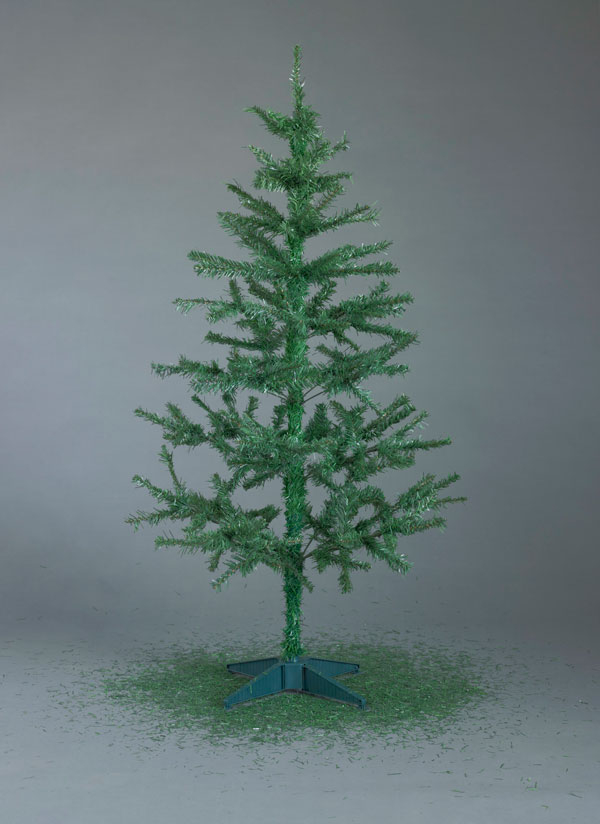 synthetic Christmas tree with plastic stand