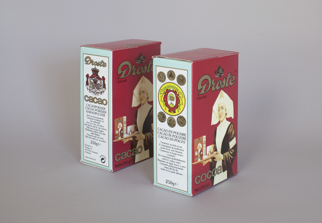 Droste Effect two packets of Droste cocoa powder facing each other forming an infinite reflection of itself
