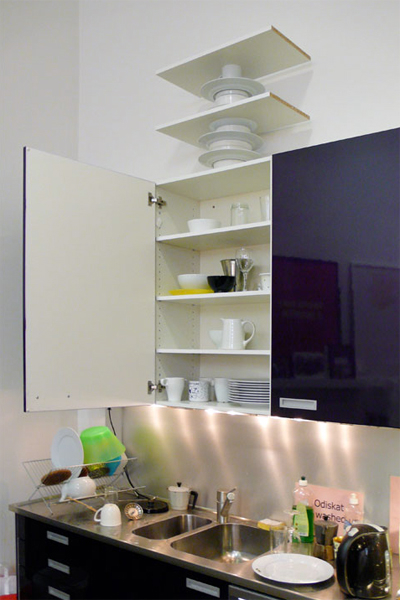 Kitchen Cupboard Shelves Extended and Supported by the Objects they Bear