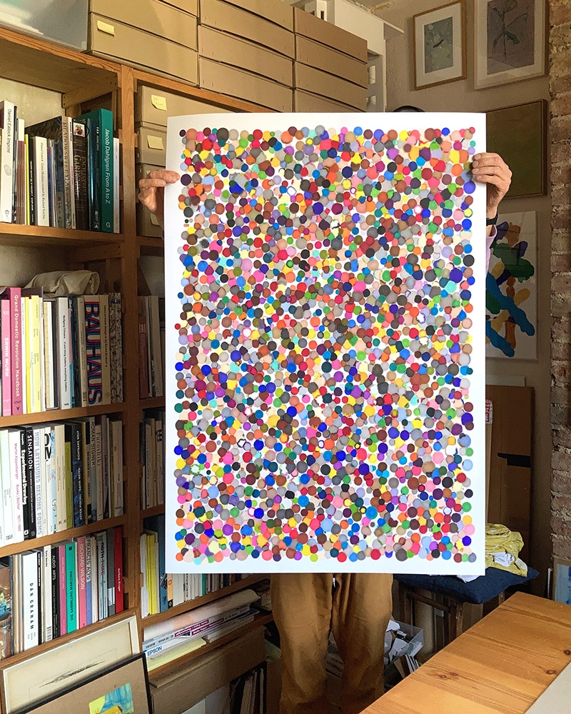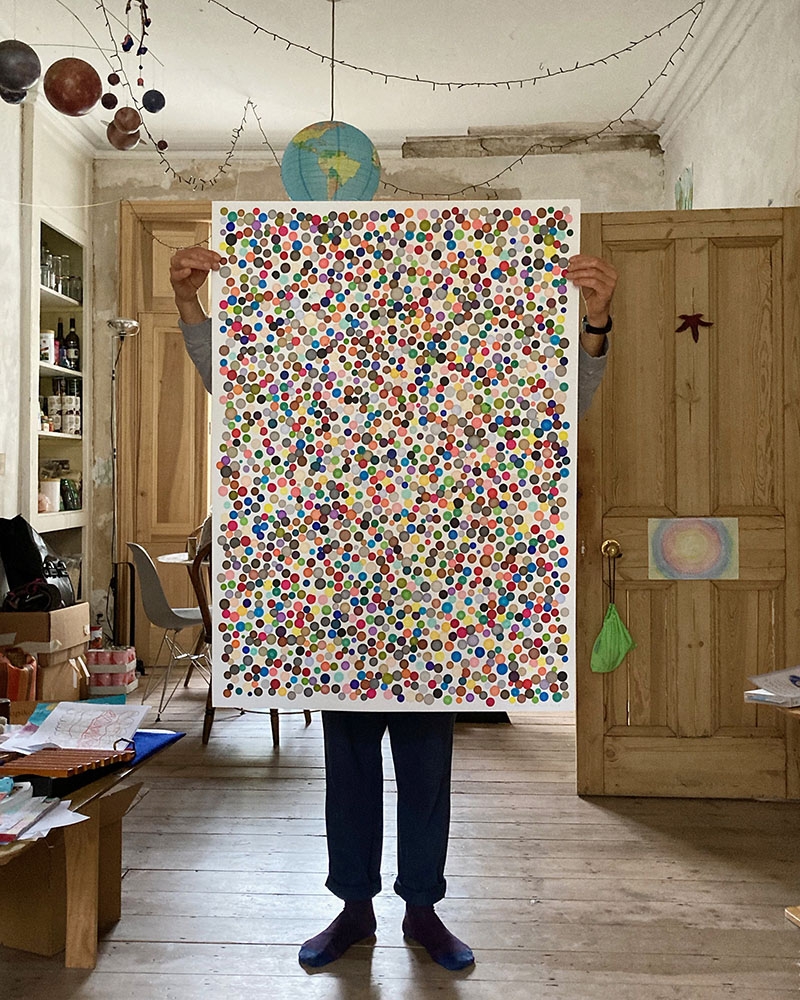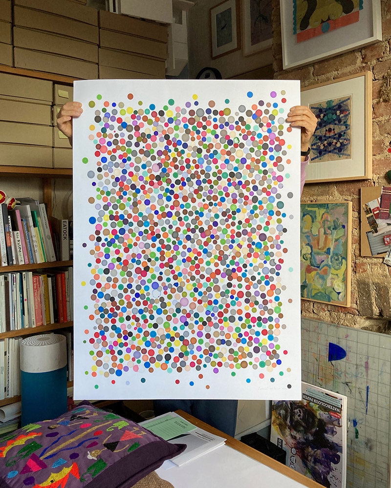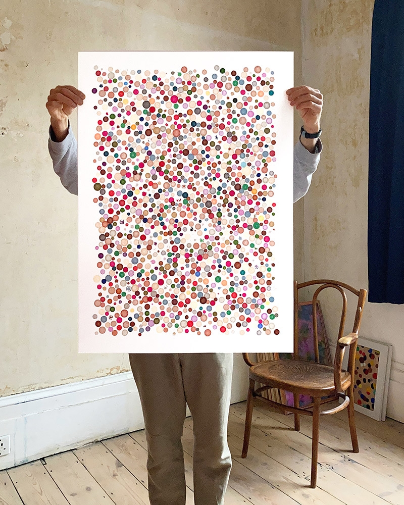 One of a kind signed originals, made using graphic marker pens, each held stationary for varying durations on a sheet of paper. For more information about these works please explore this book. To buy, please email.